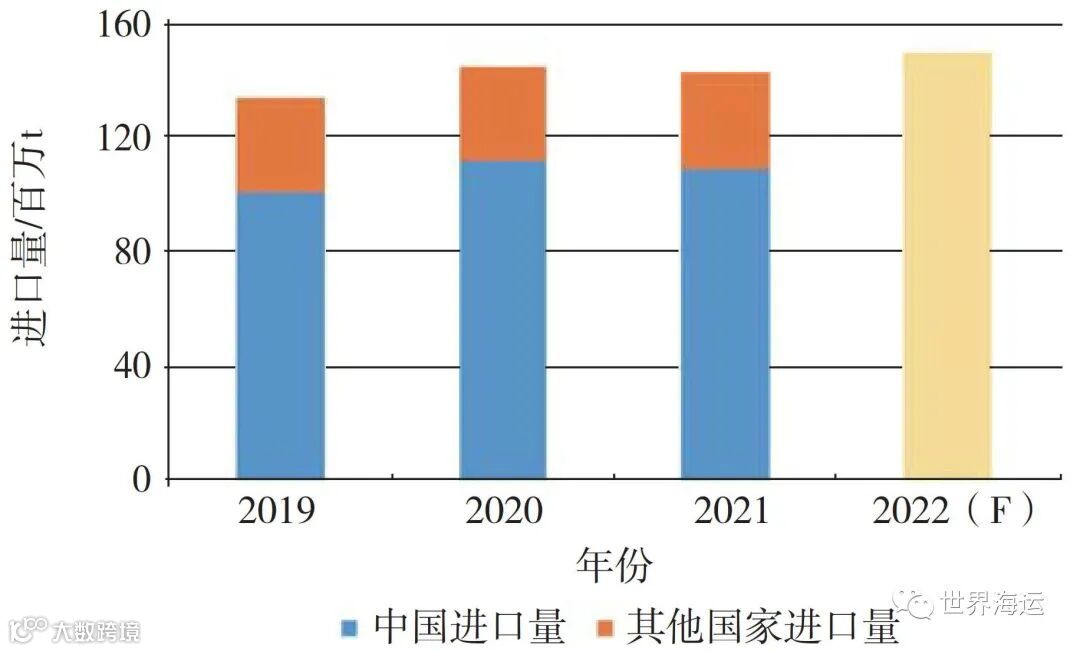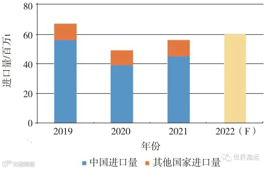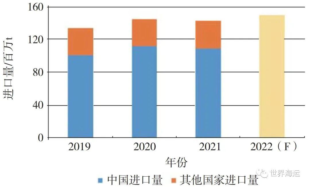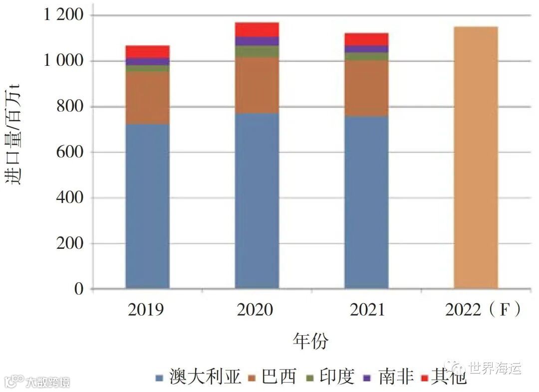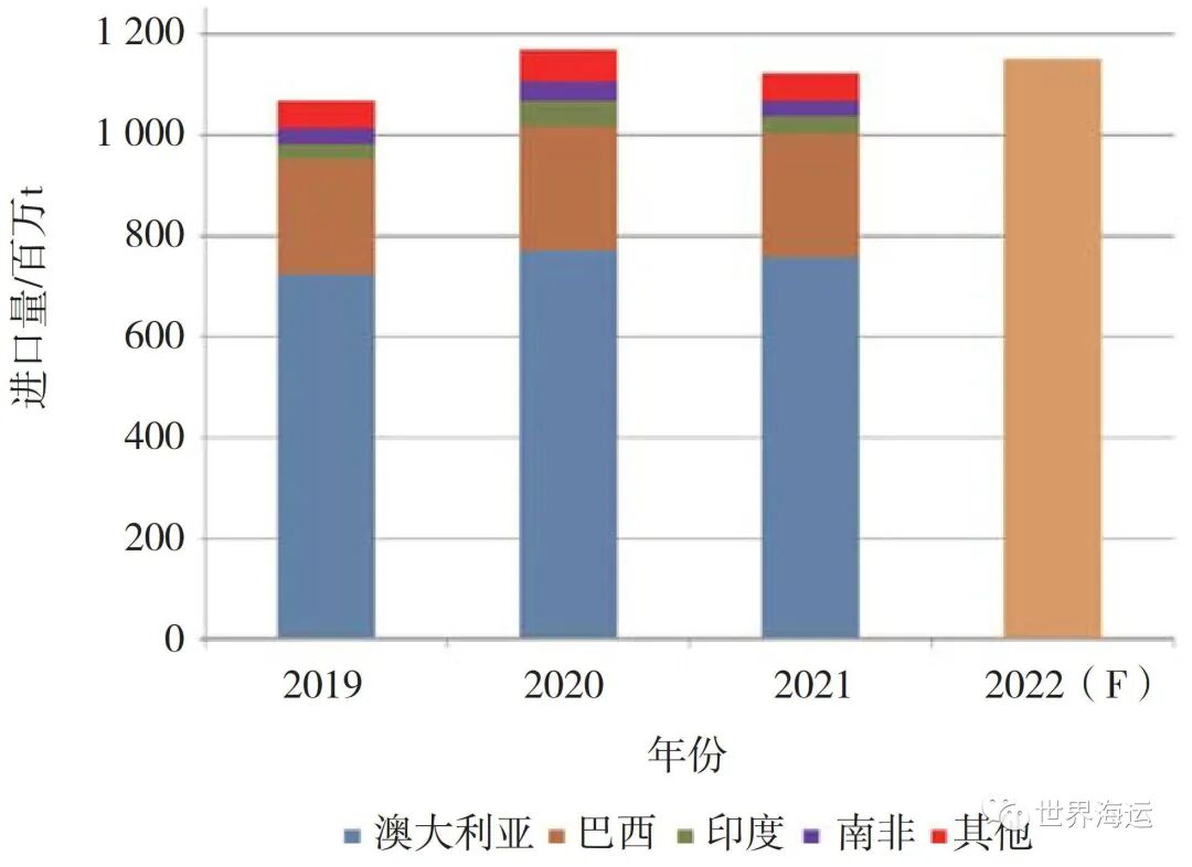 图3 近几年中国铁矿石进口来源情况及2022年预测