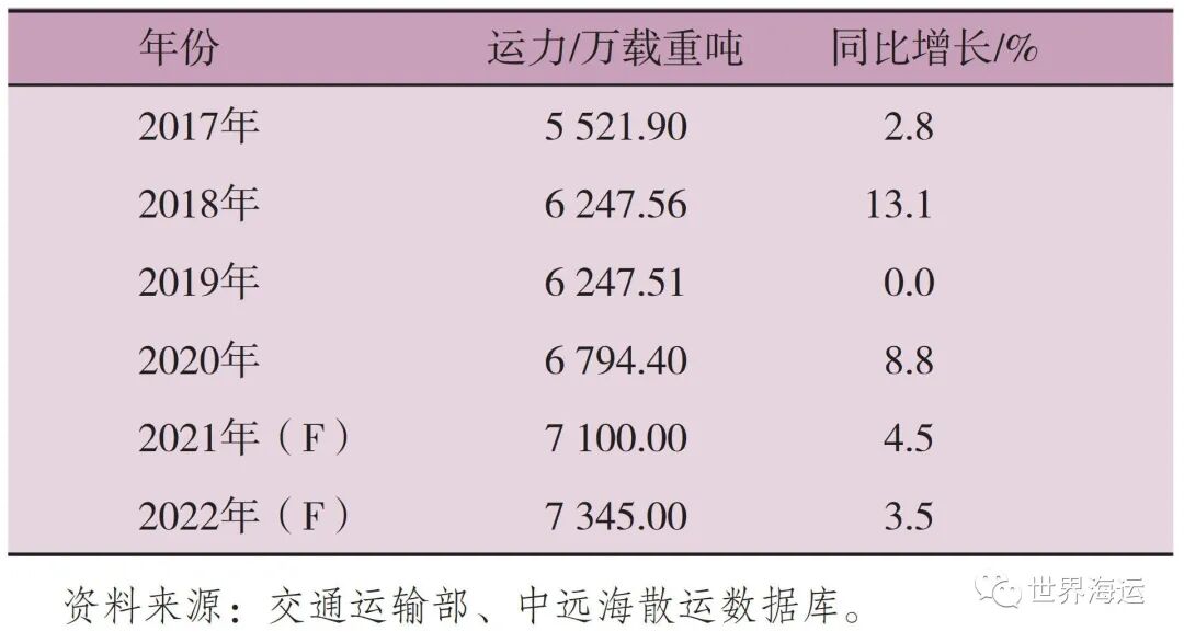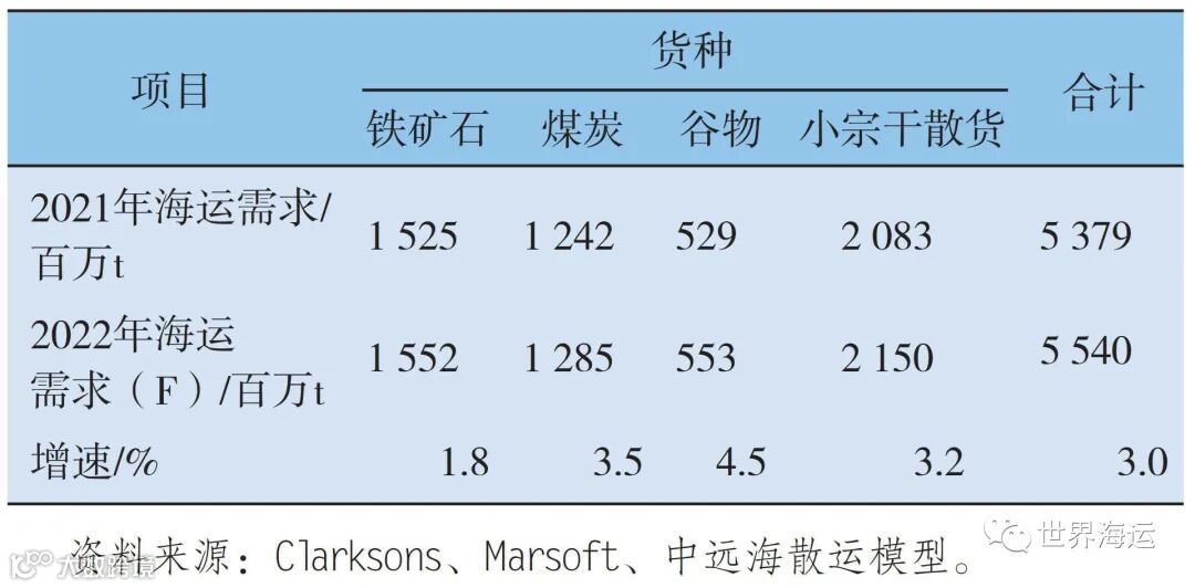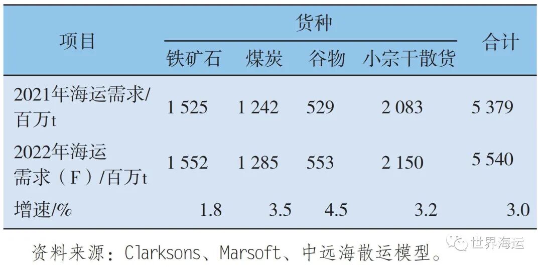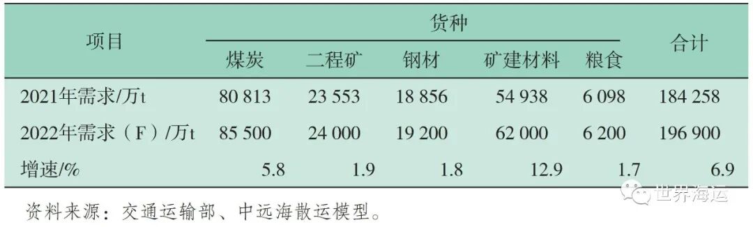 表6 2021年中国沿海市场各主要货种需求及2022年预测