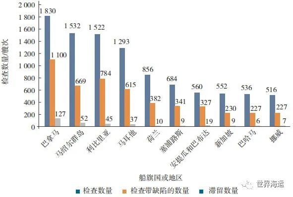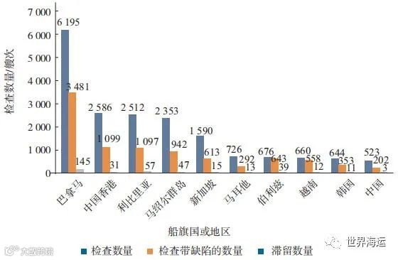 图1 巴黎备忘录检查数量排名前10的船旗国或地区