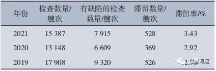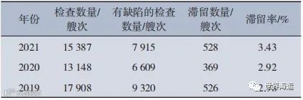 受全球新冠疫情影响,巴黎备忘录检查船舶的数量在2020年大幅下降,2021年有所上升。同时,2021年巴黎备忘录滞留船舶数量和滞留率有明显上升,表1为2019—2021年巴黎备忘录的检查情况。