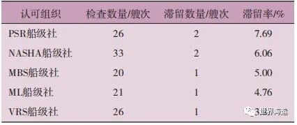 接受检查的36家认可组织 ( Recognized Organization,RO ) 中,滞留率超过巴黎备忘录平均滞留率的认可组织为5家,按滞留率从高到低排序依次为PSR船级社、NASHA船级社、MBS船级社、ML船级社、VRS船级社。表4为滞留率超过平均滞留率的认可组织。