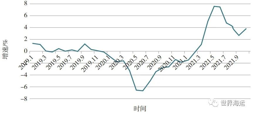 图1 2019年以来全球海运贸易量同比增速(剔除季节因素)