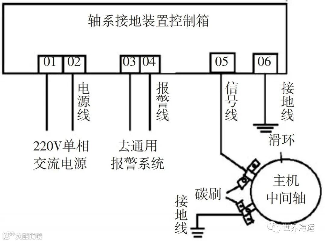 较新船舶的轴系接地装置除合金滑环、石墨碳刷和相关电路外,通常还设有一个毫伏表,用于显示和监测轴系和船体之间的电位差。轴系接地装置毫伏表的量程为0~250毫伏,能精确显示轴系和船体之间的电压。当主机不工作时,毫伏表的读数为0;当主机驱动螺旋桨转动时,毫伏表的读数通常不超过80毫伏,如超过80毫伏,系统将发出警报,提醒轮机员检查轴系接地装置工况,清洁或更换滑环、碳刷;如果主机工作时毫伏表读数为0,说明电路断路,可能是接线端子松动或安装错误。