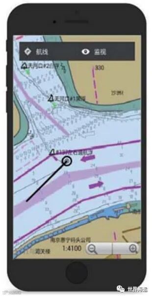 移动端导航产品具有操作简单、携带方便、应用灵活等特点,主要符合小型船舶导航的需求。我国沿海渔船、内河小型运输船舶众多,其中很多船舶船况差,船员素质低,没有配备符合标准的电子海图导航系统,给航行带来较大的安全隐患。移动导航终端的出现打破了这种僵局,为这些船舶的航行安全提供了保障。图1为一种移动端导航系统运行界面。
