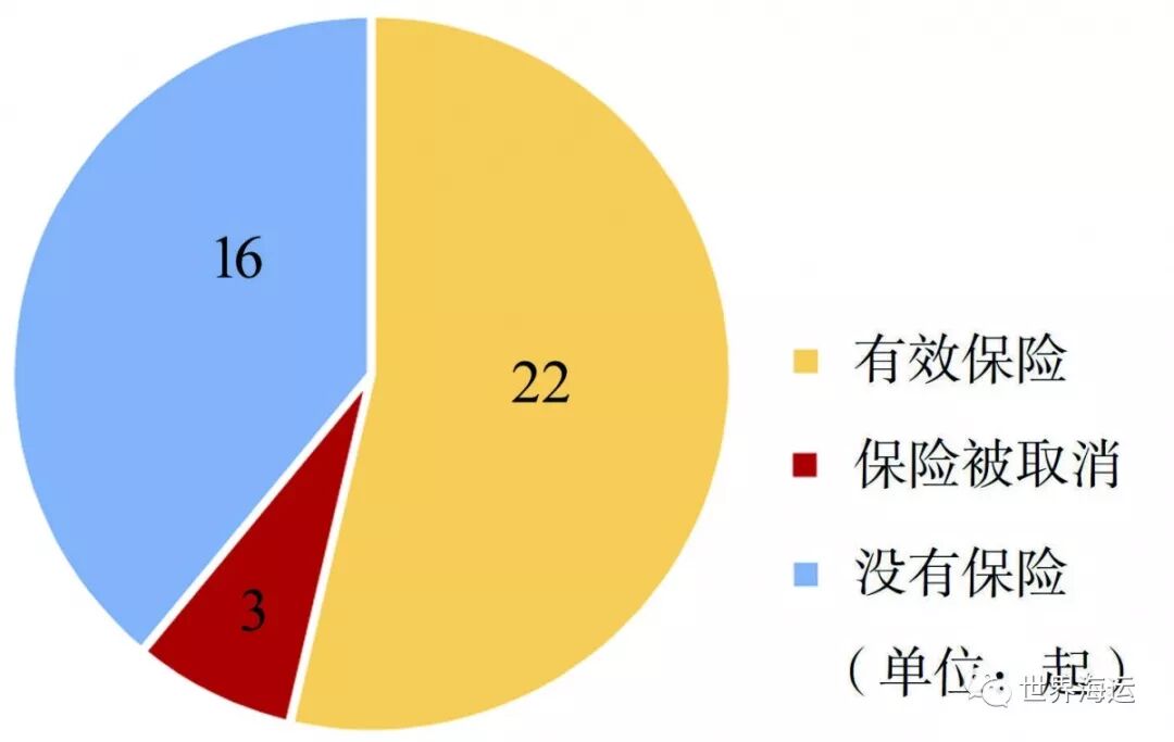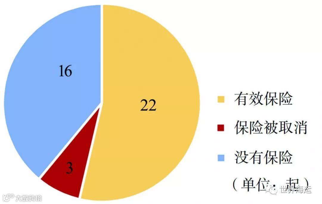 ( 3 ) 图4为在MLC修正案下需要保险的41起案件中是否持有有效保险的情况。其中,22起案件持有有效保险。这22起案件中仅7起案件的保险人按照公约要求,支付了海员4个月的未付工资和遣返费。在许多情况下,保险人要么对遗弃的定义或者对海员的责任提出异议,要么提出由船东负责的立场。没有有效保险的19起案件中,3起案件保险已被取消,16起案件中没有保险或没有关于保险的可用信息。在这16艘没有保险的船舶中,75% ( 12艘 ) 的案件涉及悬挂巴拿马国旗的船舶。所有这些船舶都被遗弃在尚未批准MLC的港口。这种现象引发了船旗国的执行问题,特别是在尚未批准MLC的部分地区。