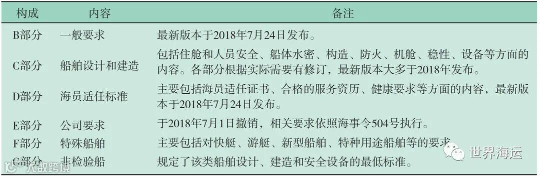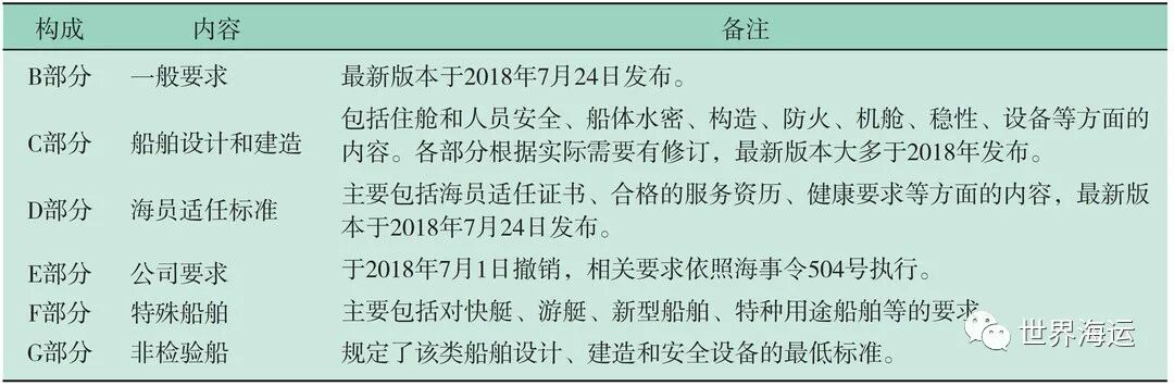 《商船国家标准》( NSCV )[3]规定了澳大利亚商船的船舶检验、建造、设备、设计、公司管理和海员适任标准。NSCV的第1版于2001年5月由澳大利亚交通委员会批准,于2002年8月首次出版。其第2版于2013年11月15日获得交通和基础设施常务理事会批准,并于2013年11月18日首次出版。当前有效版本是第2.4版,由澳大利亚海事局根据2015年、2017年和2018年相关的修正案,于2018年7月24日汇编发布。NSCV当前版本共包括6部分内容,如表1所示。
