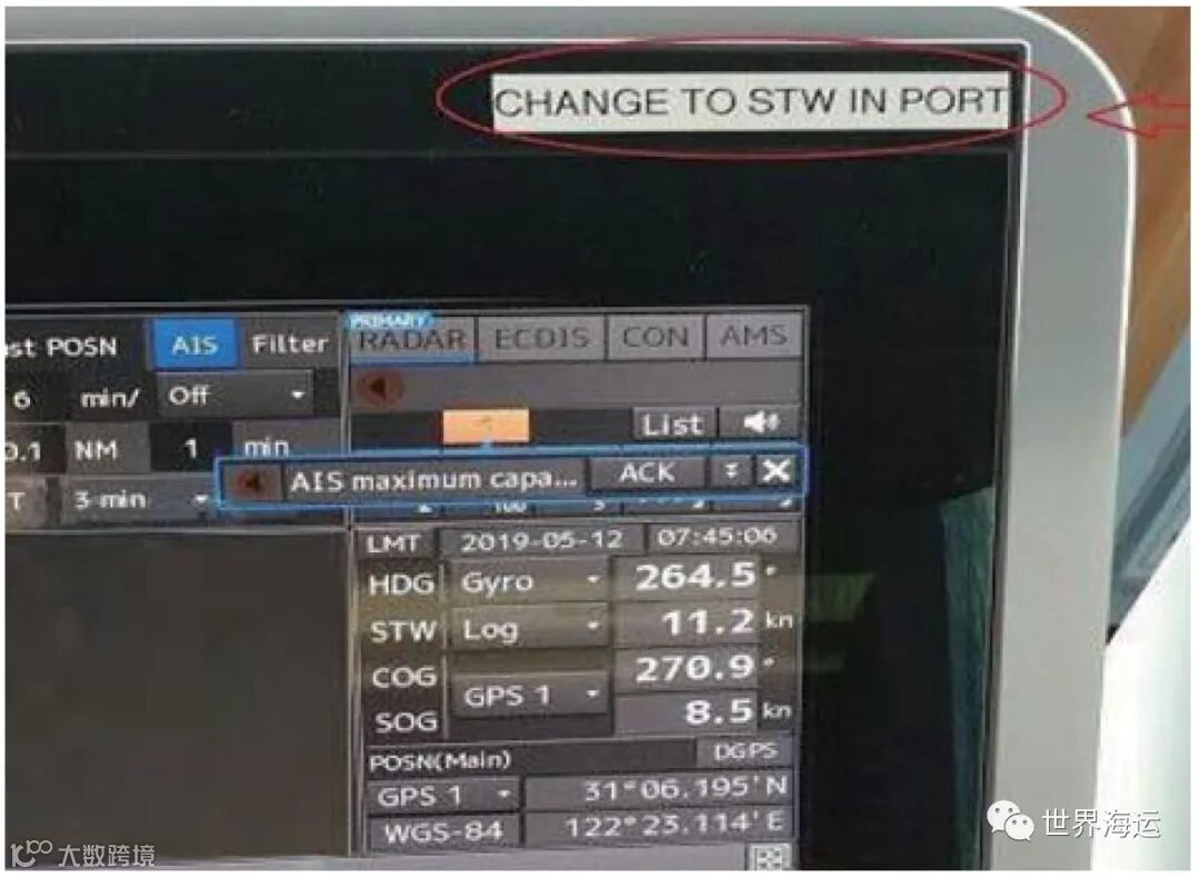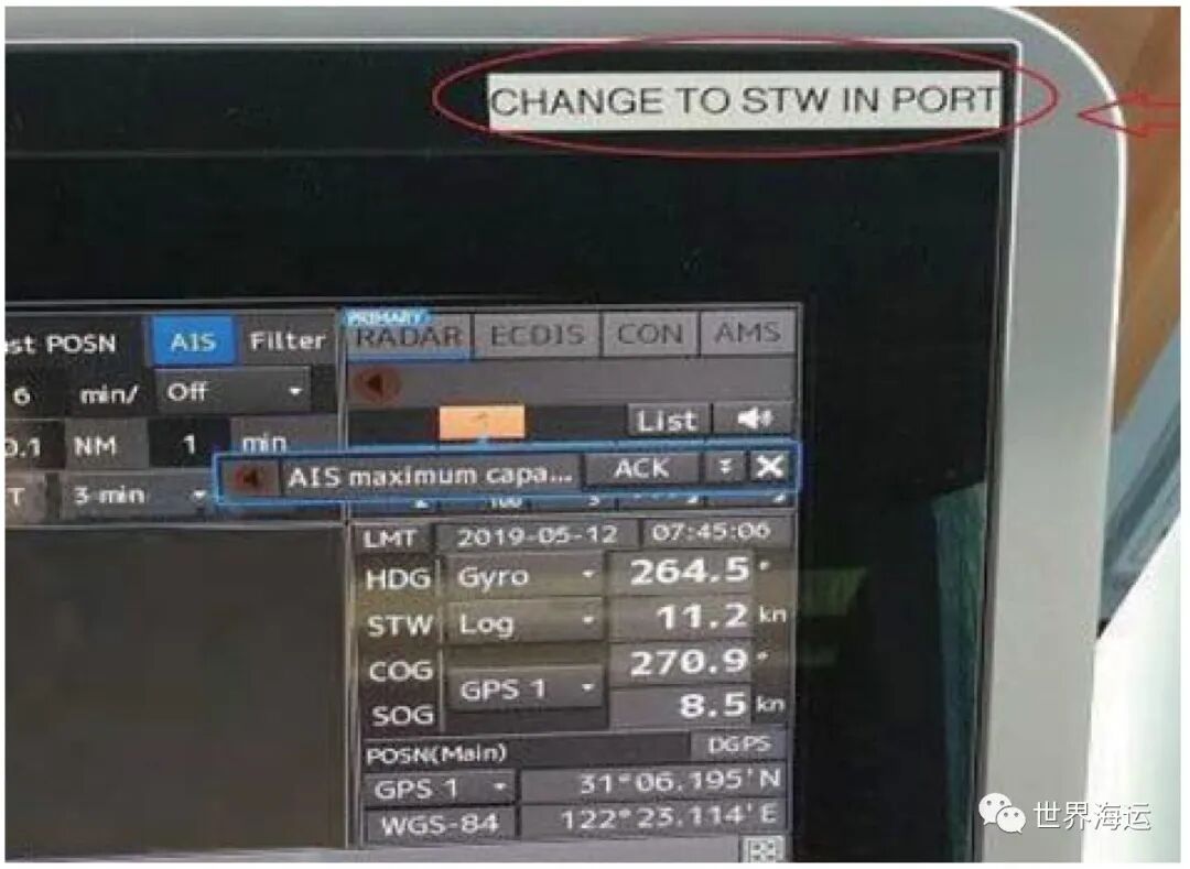 在实际工作中,常遇到有些船舶为满足避碰要求,进入港口水域后仍坚持选择对水速度 ( 如图5所示 )。这可能与船公司体系文件的规定有关。有些公司为了规避可能产生的法律风险,在体系文件中明确要求船长或驾驶员,在港口水域使用雷达时选择对水速度。面对港口水域复杂的航行环境,这种为了规避法律风险,不考虑具体环境的做法是不明智的,也可能是危险的。船公司在制定相关体系文件时应该更为细致,最好将港口水域和海上开阔水域区分开来,分别制定相应体系文件。