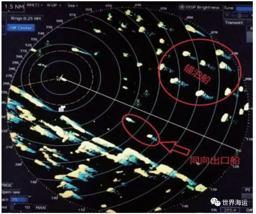 以船舶在上海港北槽航道进口航行为例,到达横沙岛以前,船舶密度通常不大,但航道两侧水域常有小渔船活动,这时应优先考虑雷达对弱小目标的探测,应适当加大增益并选择宽脉冲。到达横沙岛后,船舶密度开始变大,强反射目标增多,小渔船数量有所减少,这时应优先考虑雷达的探测精度和目标分辨力,可选择窄脉冲并适当减小增益。