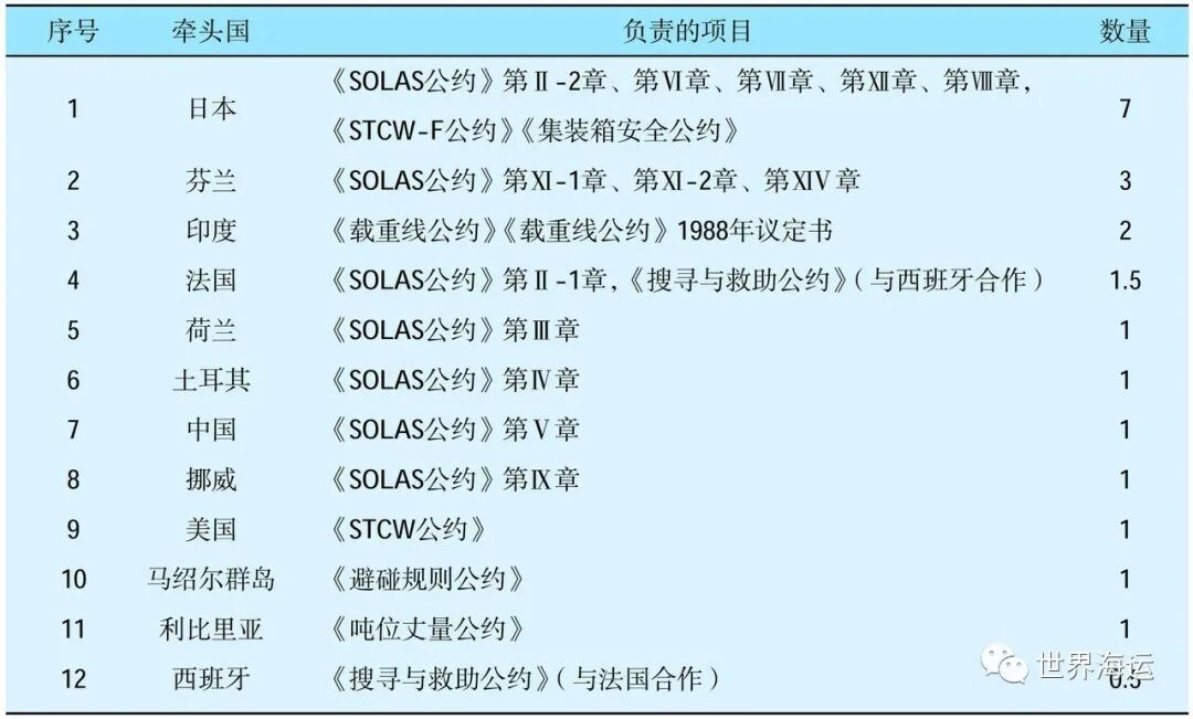 MSC主管的多个重要安全公约起源于英国,由英国主导,如《SOLAS公约》《避碰规则公约》《载重线公约》。英国还是其他安全公约及LEG主管的非技术规范类海事公约的主要推动者。因此,英国是现行国际海事公约体系的最大贡献国和主导国。基于此,英国在国际海事组织及国际航运界具有很大的影响力和话语权。然而,在MSC和LEG两委员会立法范围界定中,共有17个志愿国牵头37个项目的梳理工作,但其中没有出现英国的名字。
