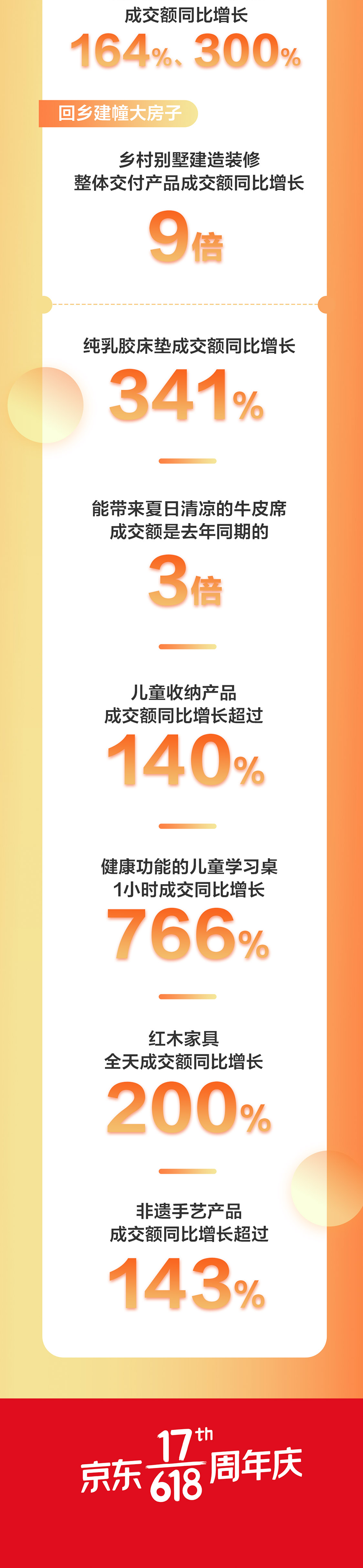 6月1日京东时尚居家平台仅用12小时成交额就超去年全天,全天数据显示,美妆成交额达去年的2.5倍,奢侈品成交额达去年的2.7倍。智能家居品类爆发趋势明显,建造装修乡村别墅的整体交付产品C位出道。后疫情时代,消费者追求更健康和更自由的生活方式,骑行运动和居家健身装备增量比翼双飞。