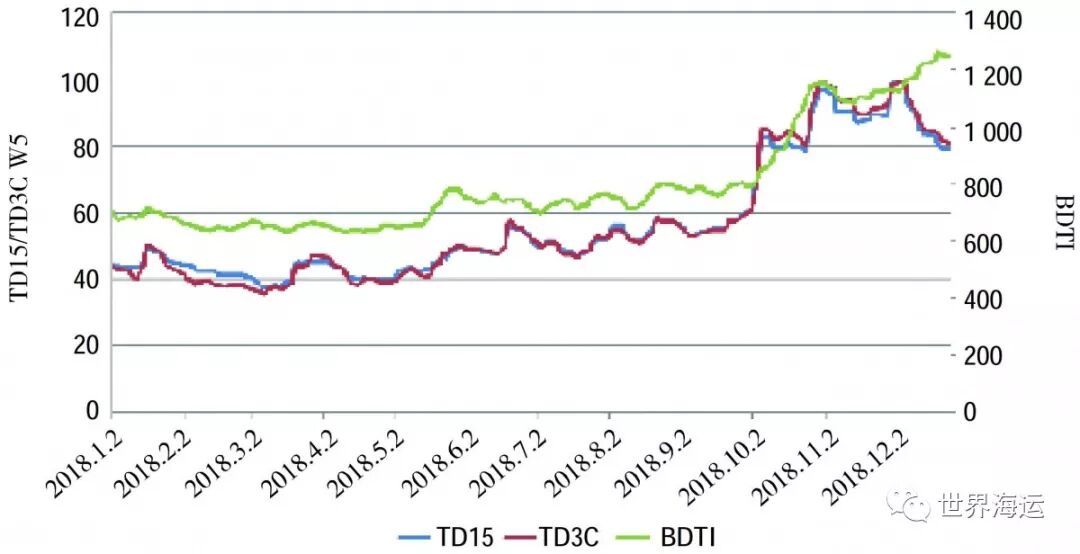 国际金融危机全面爆发距今已10周年,2018年是世界经济格局大发展大变革大调整的一个重要转折点。世界经济延续温和增长,主要经济体增长态势、通胀水平和货币政策分化明显,新兴经济体资本流出加剧,金融市场持续震荡。美国通过“货币政策正常化”“保护主义”“规则高标准化”的政策组合,诱使或迫使全球资本向美国流动,以新规则为基础强化发达经济体“统一战线”,对发展中国家形成“资本流出”和“规则边缘化”的双重压力。石油输出国组织(OPEC)执行限产计划,大规模原油过剩库存销声匿迹;美国退出伊核协议,对伊朗重启制裁,多因素促使油价强劲反弹。年末在市场担心全球经济增长放缓损及石油需求以及供给过剩加剧等因素刺激下油价暴跌。油运市场前三季度运价持续底部运行,四季度出现大力度反弹。