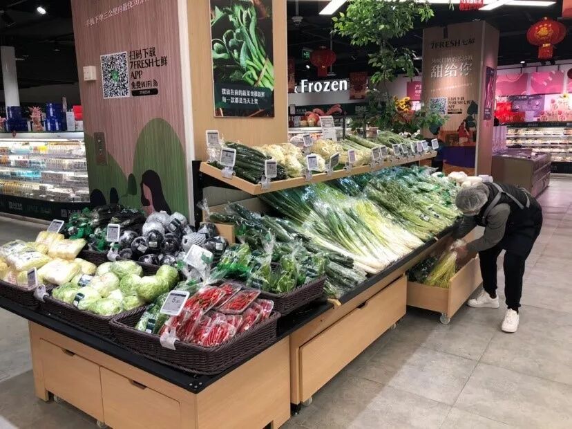 七鲜超市货架上新鲜蔬菜品类齐全