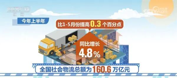 今年上半年,全国社会物流总额为160.6万亿元,同比增长4.8%,比1—5月份提高0.3个百分点。物流需求累计增速整体呈回升态势。