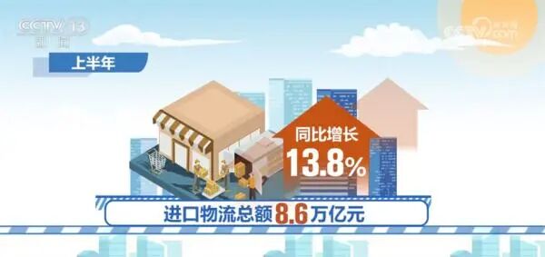 另外,上半年进口物流总额8.6万亿元,同比增长13.8%。我国进口实物物流规模整体稳中有升,展现了较强的韧性。从结构看,农产品和大宗商品进口物流量持续增长,机电产品等制造品有所回落。