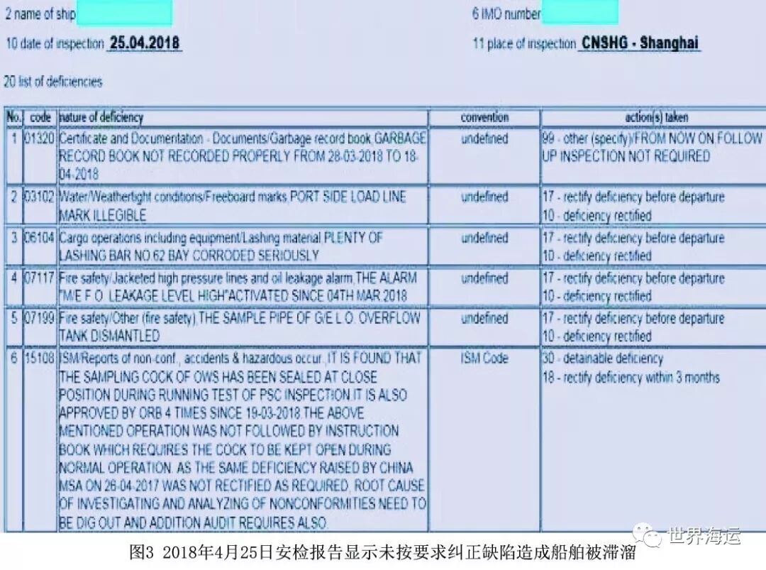 与上述案例相似,2011年3月,某船在PSC检查中被发现逃生通道上的门开启方向错误以及失控灯布置不符合要求,PSC检查官对这两个缺陷给予行动代码17,要求船舶开航前纠正。但船舶未按要求纠正缺陷,导致2012年2月份在同一港口接受PSC检查时被滞留。