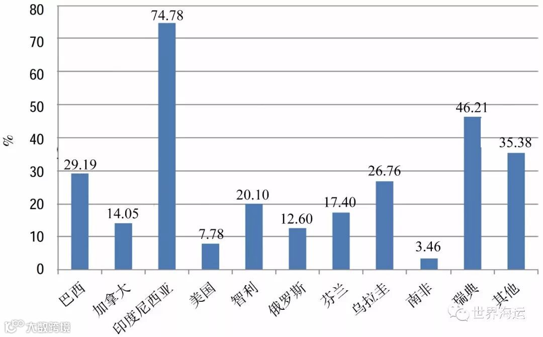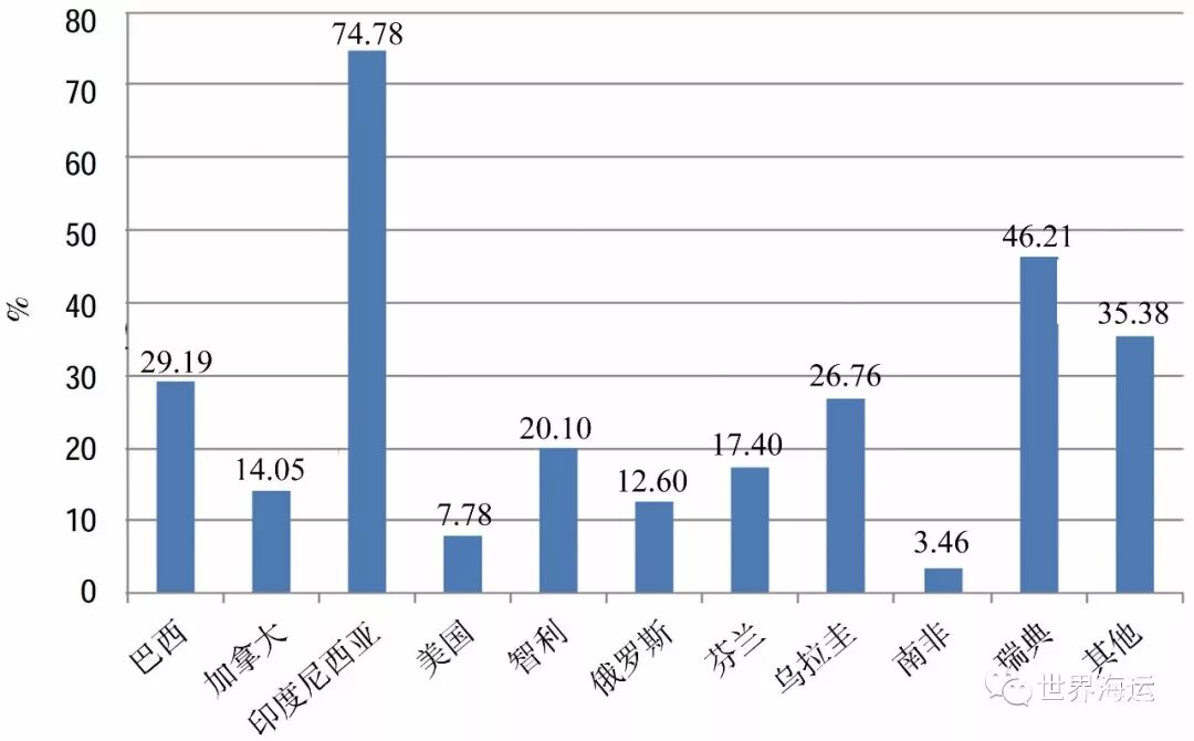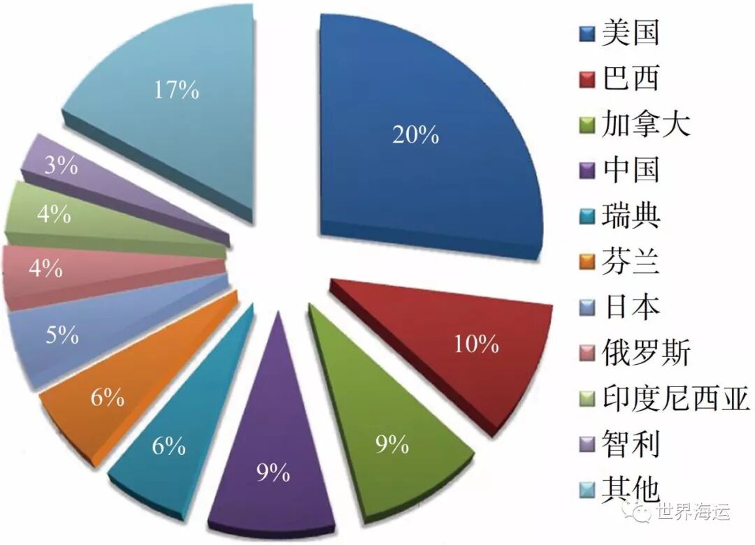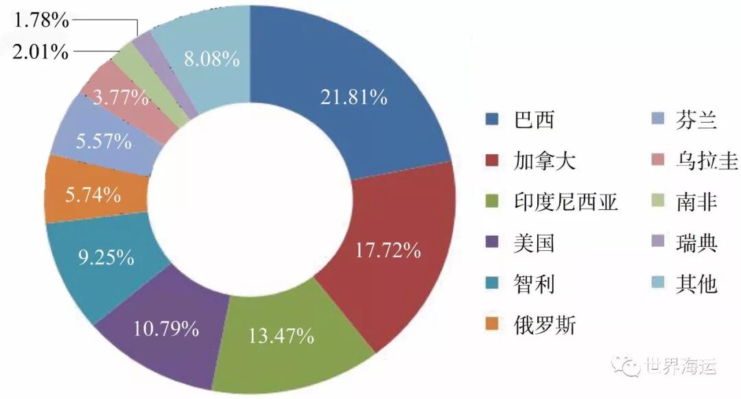 图2 全球纸浆产量最大的前十个国家产量占比