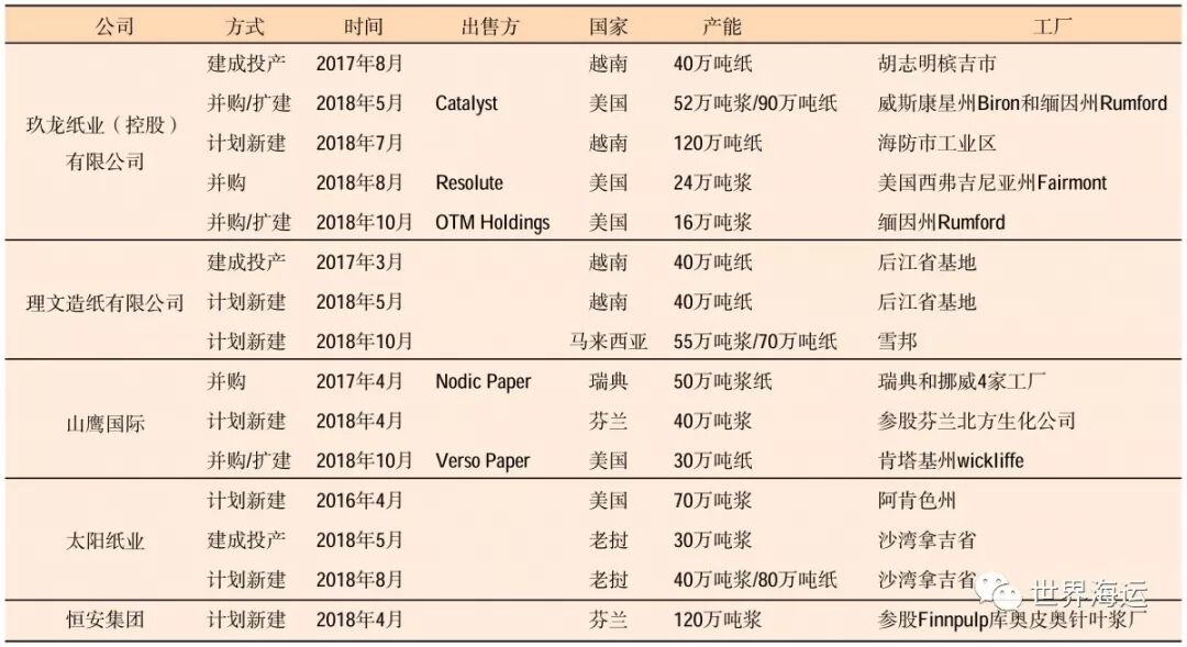 表4 中国纸厂加速海外布局情况