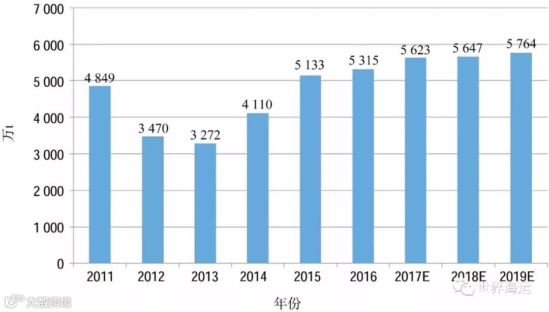 摘要:回顾2018年全球纸浆海运市场运行情况,对全球纸产品、纸浆海运量以及中国纸浆进口海运量变化情况及主要影响因素进行分析。在分析全球纸浆市场需求端和供给端基础上,对未来的全球纸浆市场走势进行预测,并重点对最具潜力的中国纸浆市场供需对比进行分析预测。在分析现有船队吨位分布、船队船龄分布以及新建船舶及订单情况的基础上,结合运力和全程物流分拨业务控制相对集中的情况,预测未来纸浆船运力变化情况。最后总结市场供需情况和经营模式特点,对未来纸浆船市场前景进行展望。