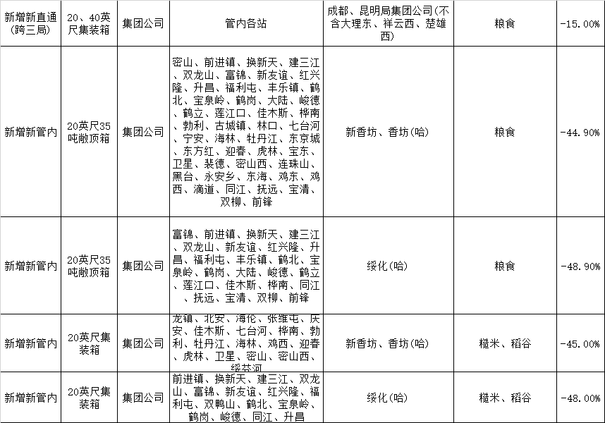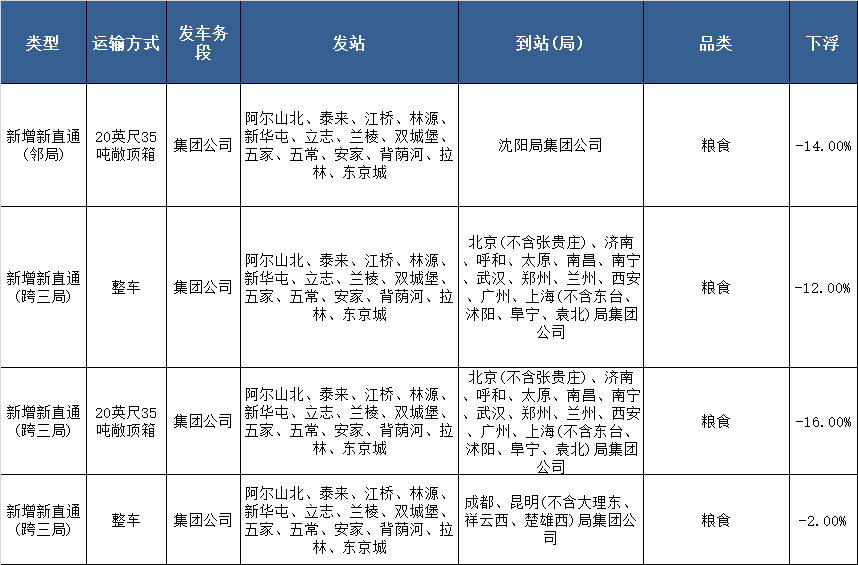 导读:哈局12月运费下浮表,最高下浮81%,时间:2021年12月1日到23月31日,品类:粮食、糙米、稻谷等,托运人:不限,收货人:不限