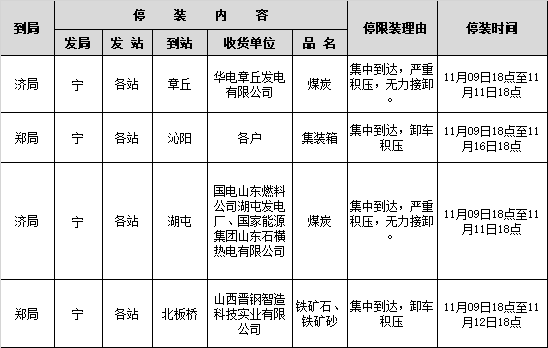 导读:南京局11月8、9日停限装公告,1. 自11月8日18点至11月30日18点,全路各站发往成都局集团有限公司汉源站各户的各类