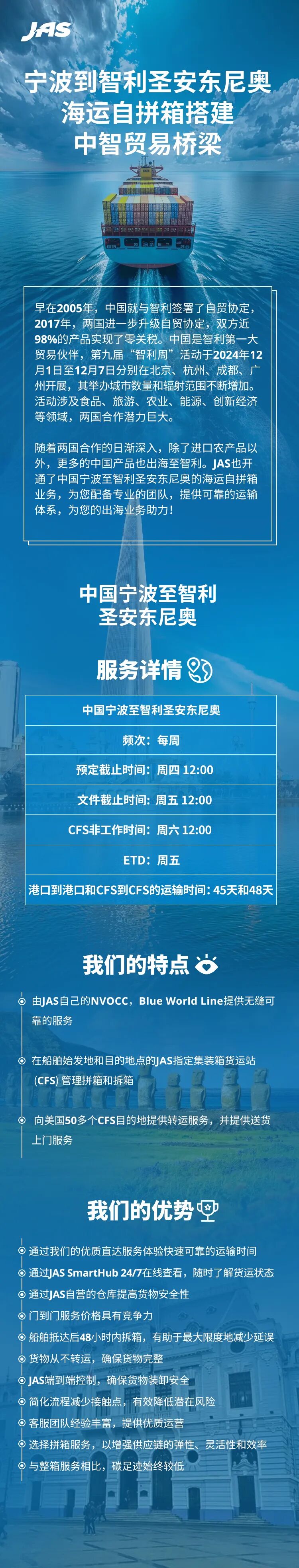 宁波到智利圣安东尼奥,海运自拼箱搭建中智贸易桥梁
