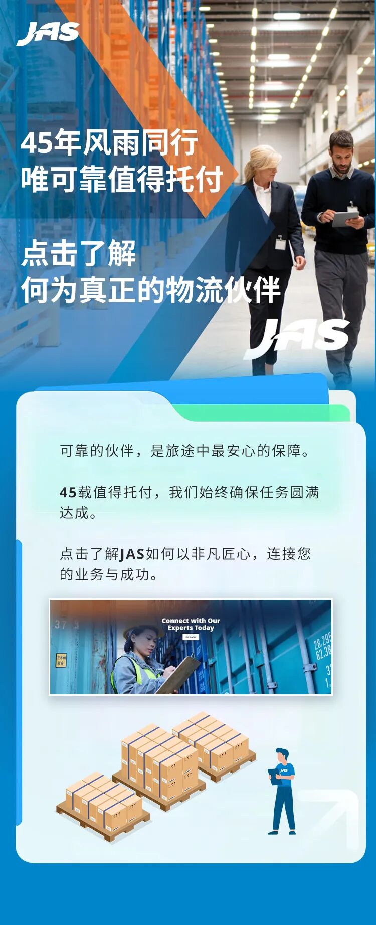 45年风雨同行,唯可靠值得托付|点击了解,何为真正的物流伙伴 JAS捷爱士国际货运