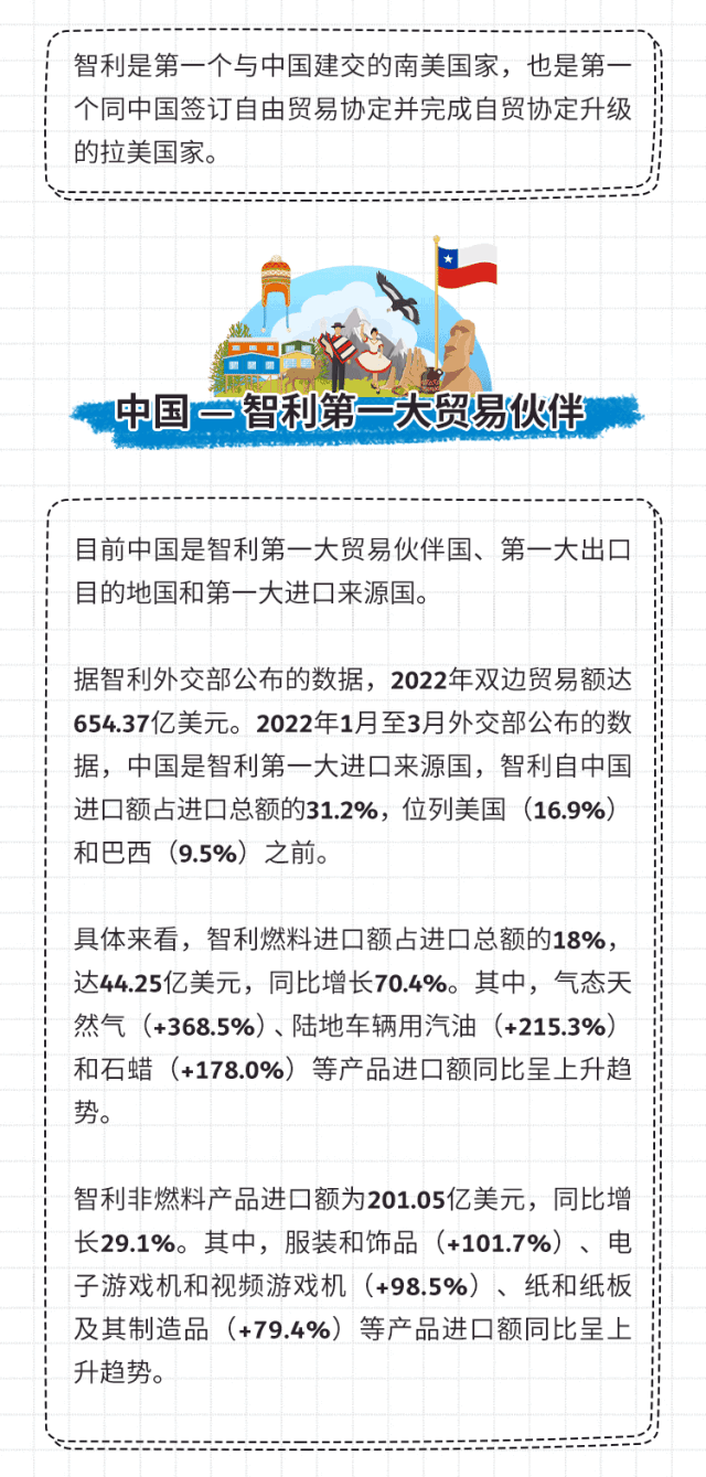 导读:智利是第一个与中国建交的南美国家,也是第一个同中国签订自由贸易协定并完成自贸协定升级的拉美国家。
