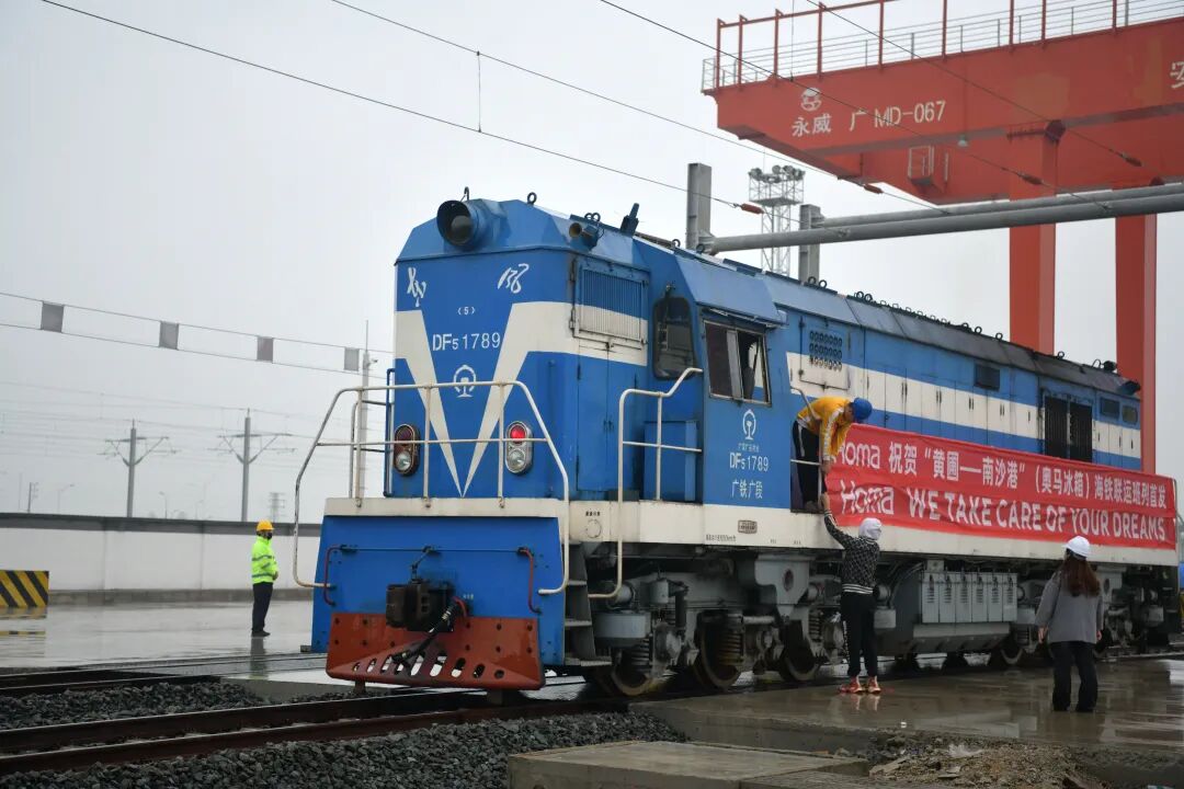 南沙港铁路黄圃货运站“黄圃——南沙港”海铁联运(奥马冰箱)班列首发