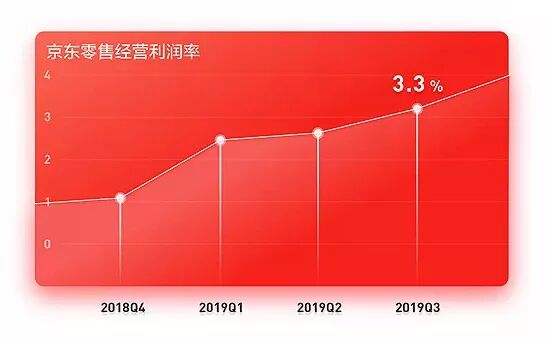 京东零售的技术转型带来了显著成效。11.11期间,京东零售单品类商品成交额突破亿元仅用了20秒,在这么短的时间内顺畅完成如此庞大的交易量,离不开技术的支撑。近日发布的2019年京东Q3财报也显示,得益于数字营销能力及智能供应链能力的提升,京东零售经营利润率增长至3.3%,创上市以来最高纪录。