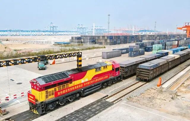 随着海铁联运班列线路不断增开,目前西部陆海新通道辐射范围拓展至17省份61市115站,实现西部12个省区市全覆盖,并延伸至中部地区。刘福名介绍说,西部陆海新通道已常态化衔接中欧(亚)班列,南货北上并出口欧洲,北货南下并出口东盟国家,促进与沿线国家经贸往来。