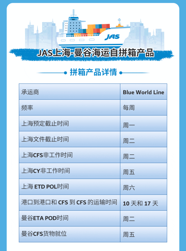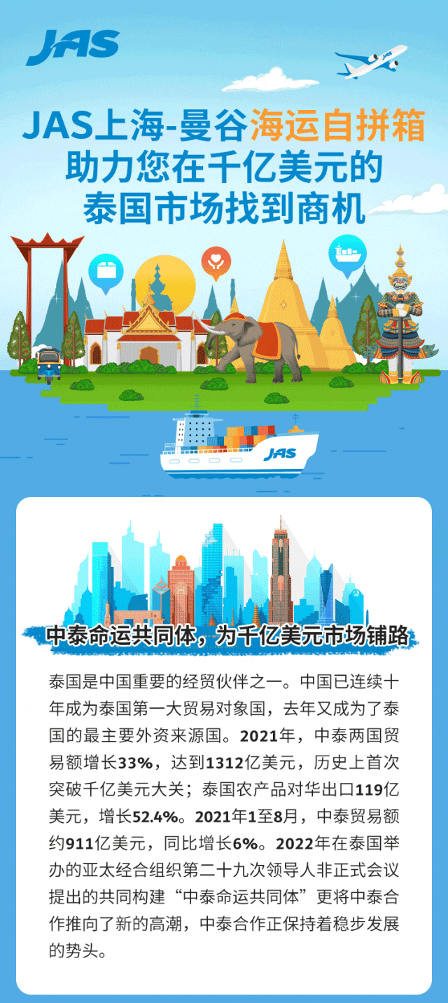JAS上海-曼谷海运自拼箱,助力您在千亿美元的泰国市场找到商机