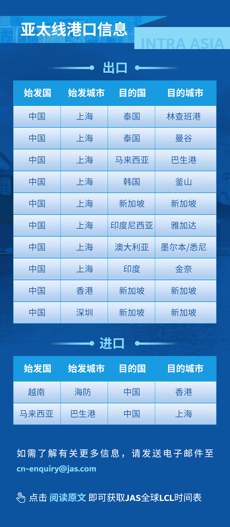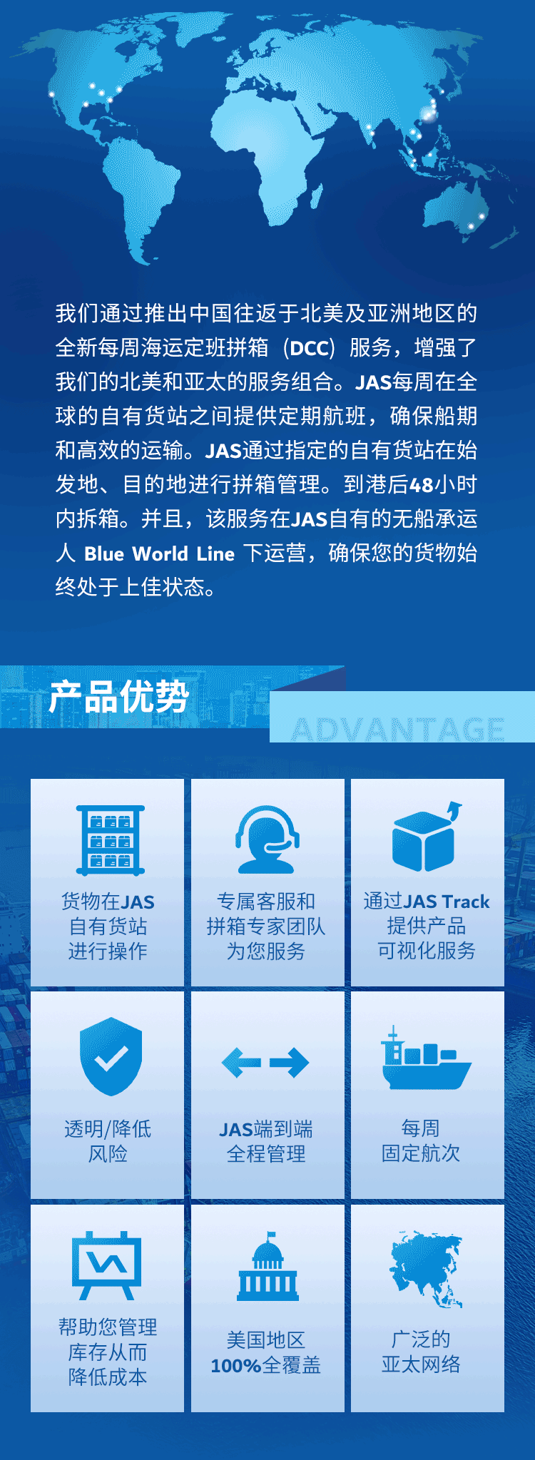 导读:JAS自营进出口海运定班拼箱,广泛覆盖北美及亚太地区。灵活拼箱省成本,可视化服务更便捷。详情请看正文,记得收藏哦!