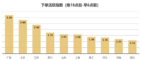 广东、北京、江苏成为夜经济下单的活跃地区。其中,“夜猫子”人群主要聚集在中西部及南部省市,“早睡族”则以东北和中部地区为主。