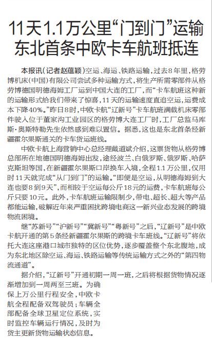 11天1.1万公里“门到门”运输东北首条中欧卡车航班抵达大连