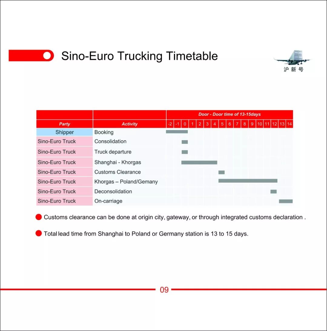 推广中欧第四物流通道-卡车运输。门到门15天,空运的速度,卡车的价格,全气垫卡车全程高速公路运输,每周固定发车,往返对开,大大缩减了中国和欧洲之间的运输成本和时间,填补了空运和铁路之间的产品空白。