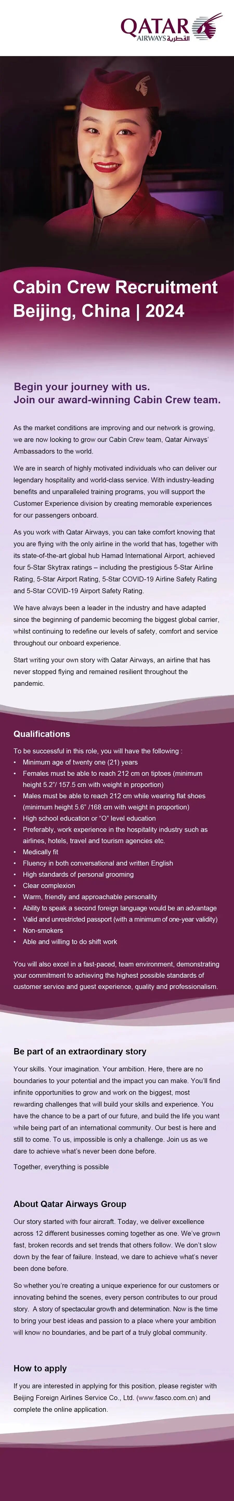 卡塔尔航空荣幸成为服务六大洲的最年轻的全球化航空公司之一。作为全世界发展最迅速的航空公司,1997年成立以来,收获了诸多奖项和荣誉,并成为了荣获Skytrax五星评级的全球精英航空公司之一。我们会不断向前,将卡塔尔航空打造成您的不二之选。