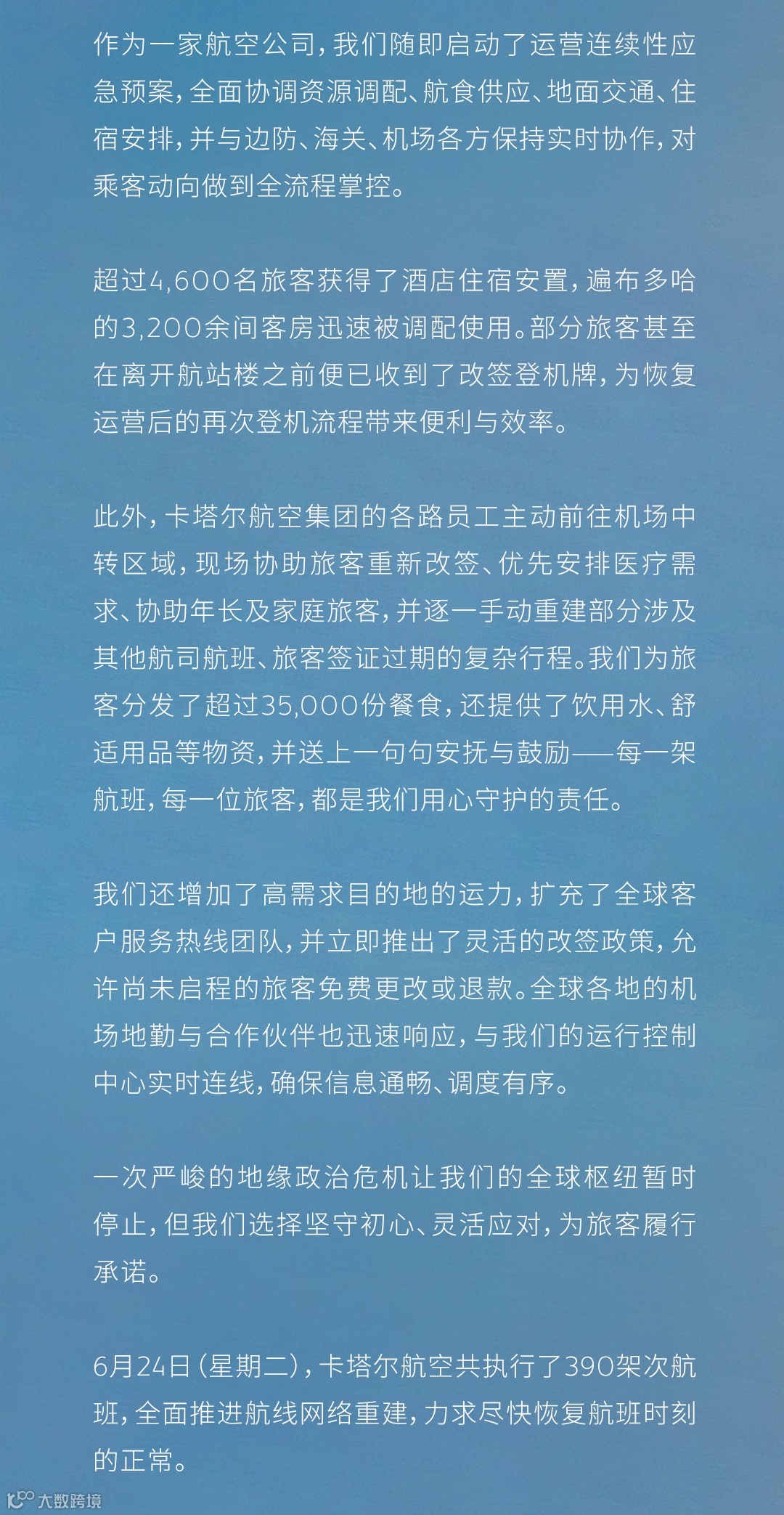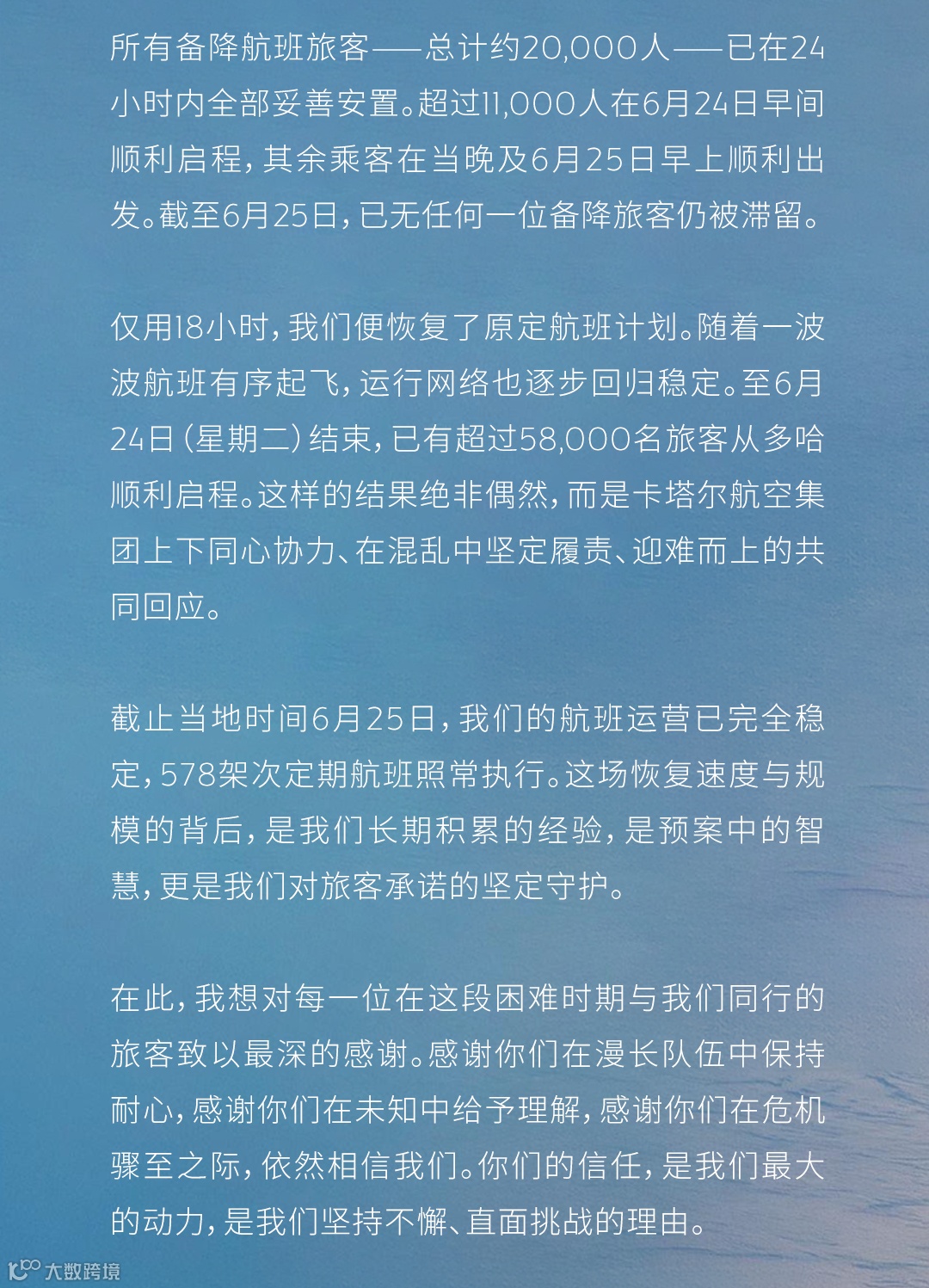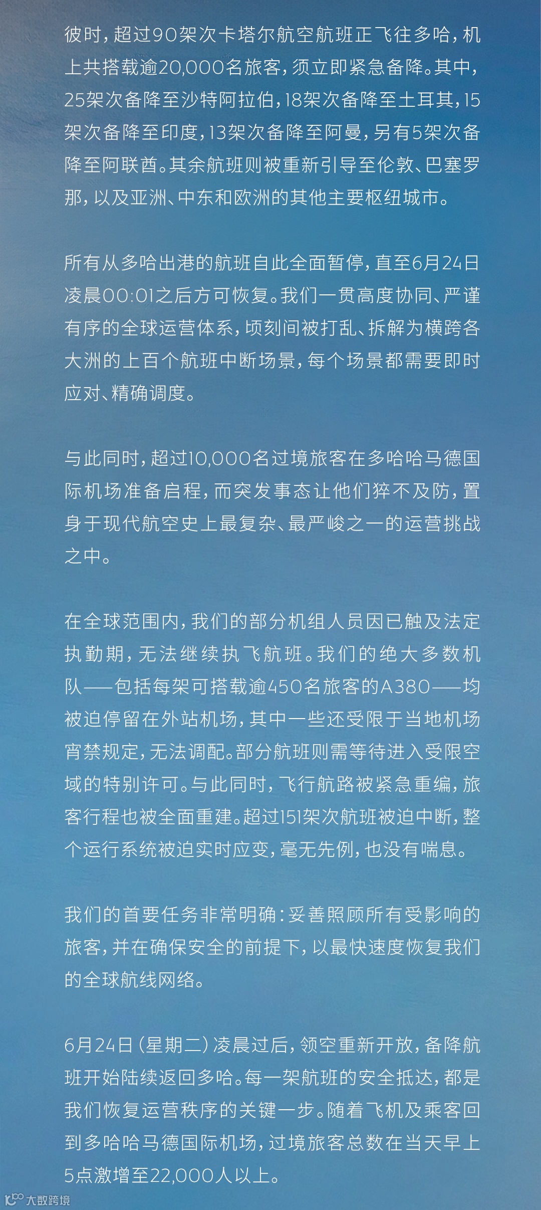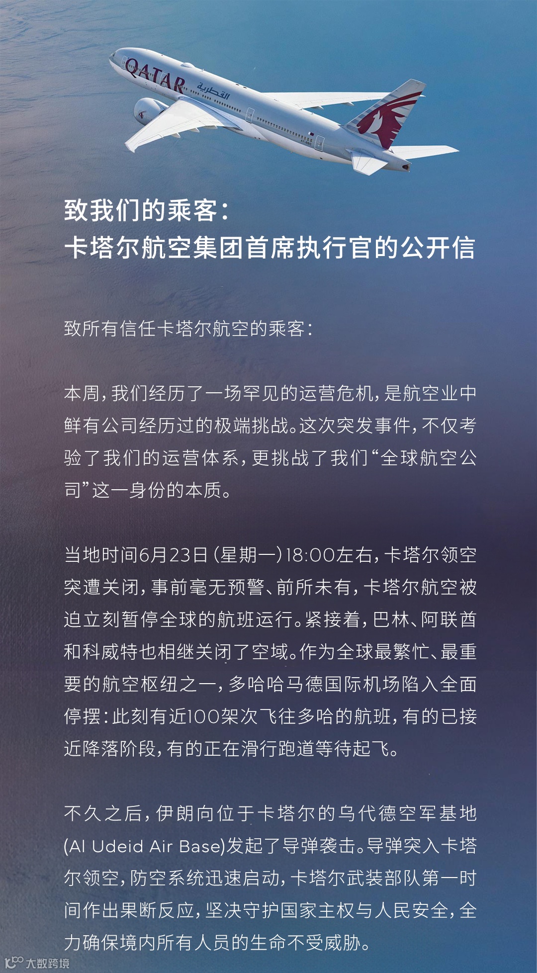 致我们的乘客:卡塔尔航空集团首席执行官的公开信