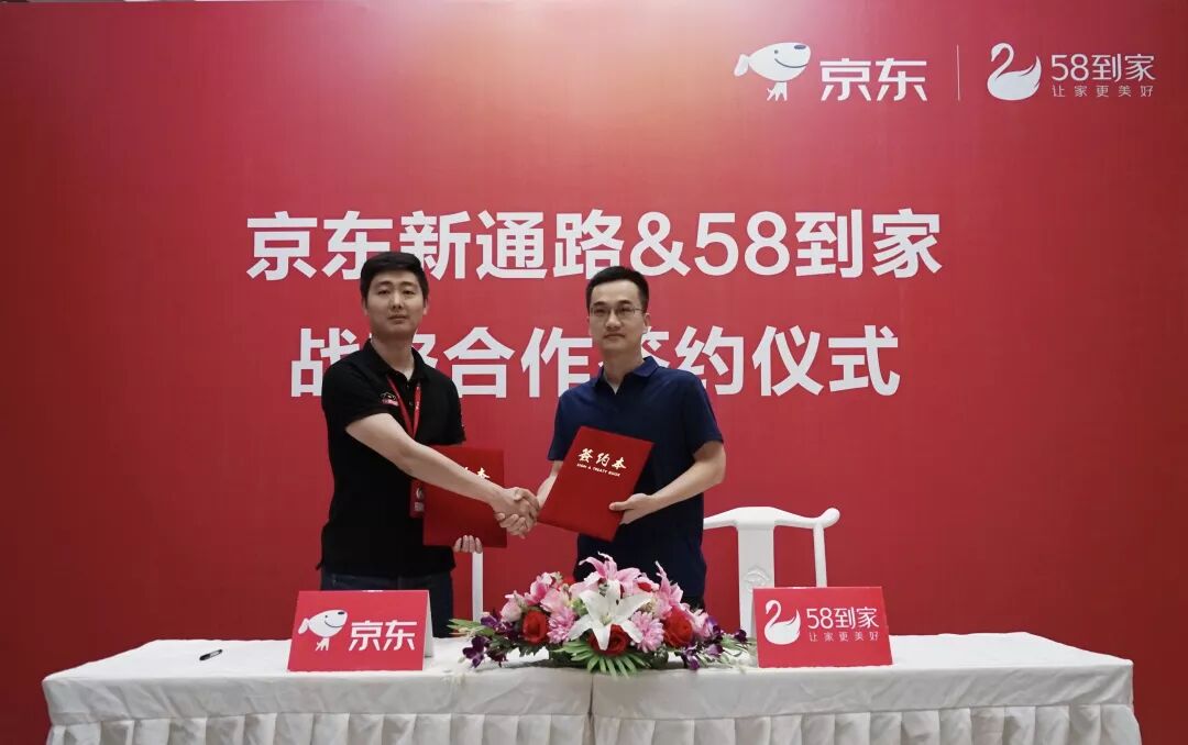京东零售集团新通路事业部零售业务部总经理巴恩龙、58到家开放平台总经理何松出席签约仪式