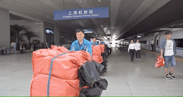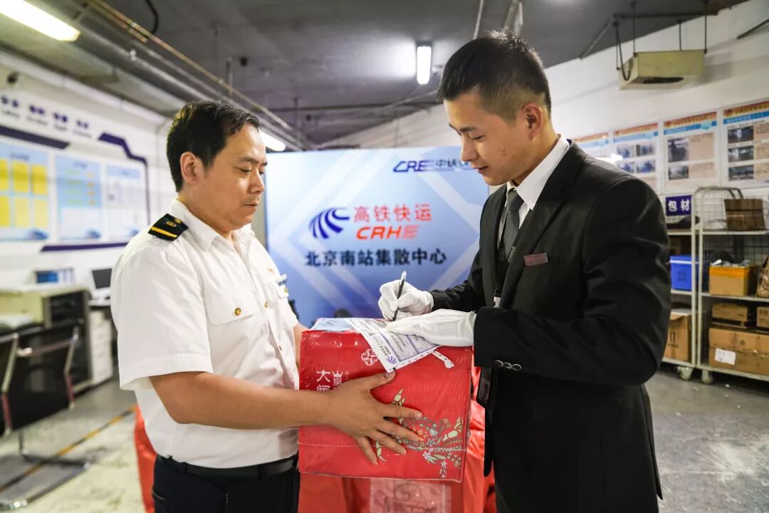 无论是从京东的货运中转场、还是上海虹桥站、北京南站,还是京东营业站点,每个节点都有工作人员紧张有序的忙碌身影。