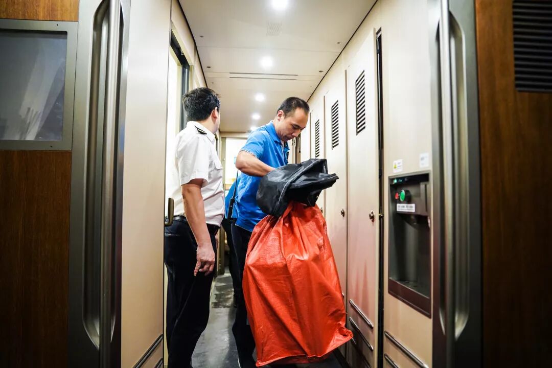 下午14:00,高铁准时发车,大闸蟹与乘客一同开启北上的旅程;