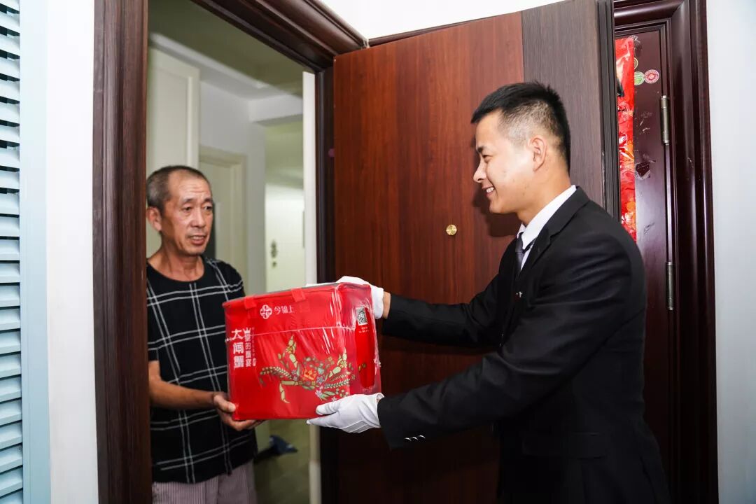 当天晚上,京尊达配送小哥将大闸蟹送达北京的消费者手中