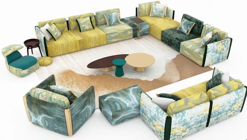 此次在京东首发的故宫宫廷文化×左右沙发千里江山系列家居生活空间联名产品,以1000多年前北宋画师王希孟创作的《千里江山图》为蓝本,将传统文化引进日常厅堂,在大件上取其气势,在小件上取其灵动,呈现可正可闲的包容。左右沙发通过选用具有光泽的仿真丝面料,搭配高精密浅蓝色仿真丝刺绣,再采用不同深浅的色织工艺,延续了原画的蓝绿明艳色彩,再现了错落有致,蜿蜒起伏的山峦,更契合了左右沙发对面料处理的苛刻和刺绣针织的高超工艺。至于锦鲤懒人沙发,整体造型仿佛游走于浩瀚江山中的锦鲤,鱼尾靠背可前后翻动,适应各种躺姿,就算是“懒人躺”也不乏灵动之感。