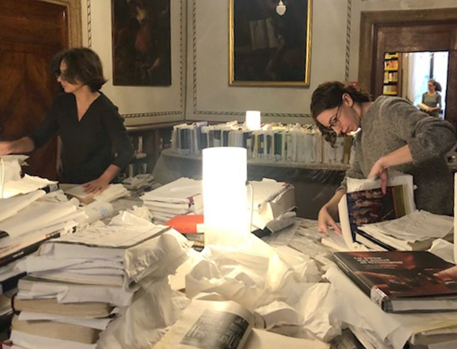 志愿者们正在忙碌救护浸湿的图书
