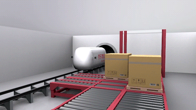 货物在地下管廊中进入胶囊车