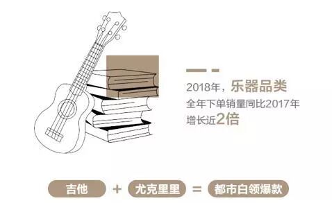 琴在手上,书在枕旁,给精神世界一个角落。纵观2016-2018年,都市白领最喜欢的休闲乐器都是吉他,吉他及吉他相关产品都是销量王,它的“孪生兄弟”尤克里里也是都市人群的心头好。而在图书类型的选择上,都市人偏好成熟和理智,“心理学”、“励志与成功”、“进口原版”下单销量上榜增速前三名。