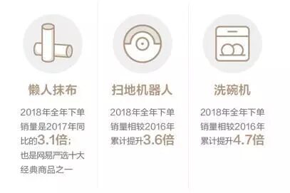 从单品来看,“懒人抹布”2018年全年下单销量是2017年同比的3.1倍,同时它也是网易严选十大经典商品之一。