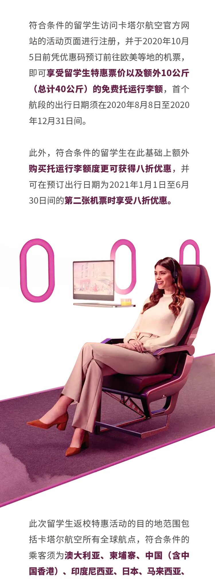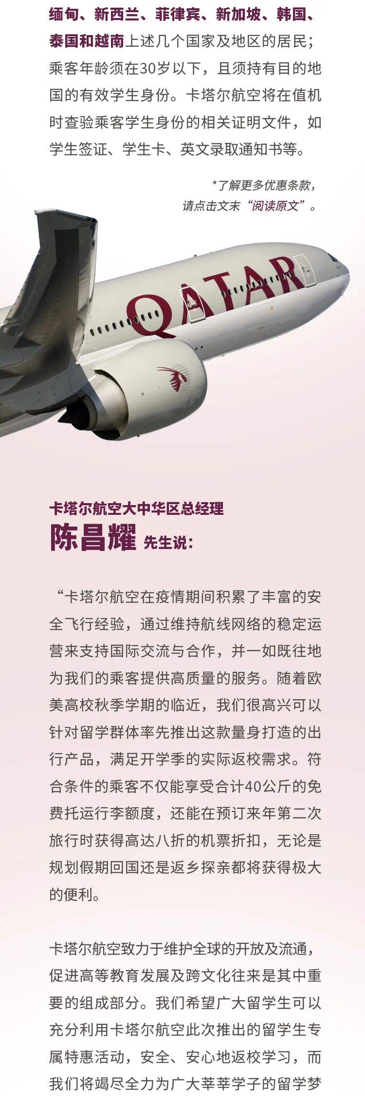 导读:卡塔尔航空推出留学生专属特惠,助你顺利、安全返校。