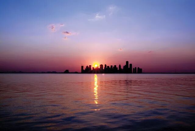 以橘黄的天空和泛红的晚霞预告着一天生活的结束