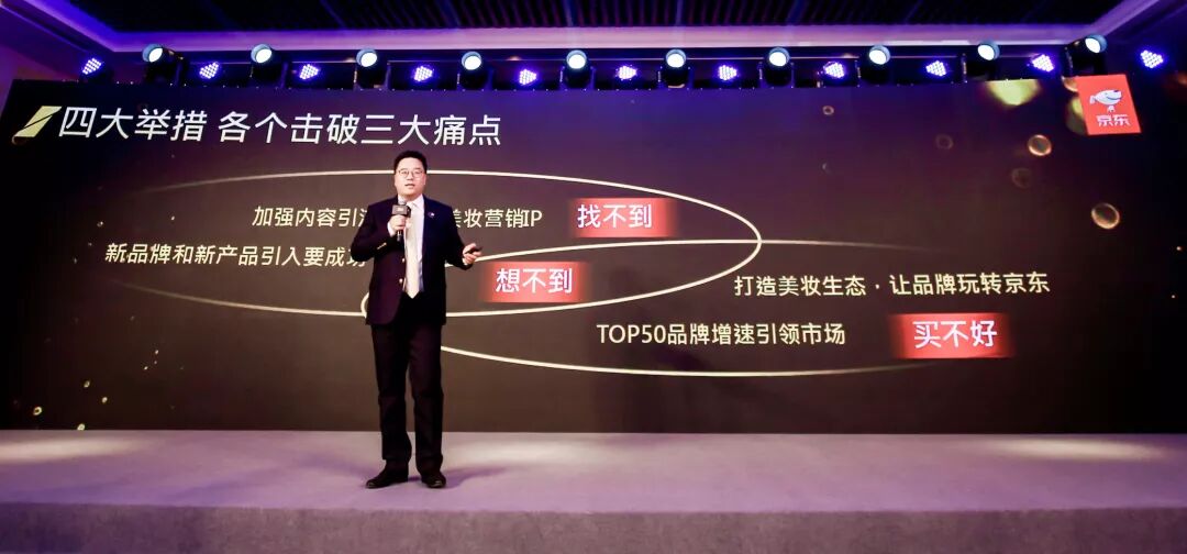 ▲ 京东商城时尚居家平台事业群美妆业务部总经理王滔分享京东美妆四大举措