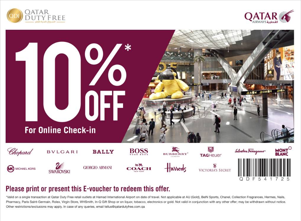 最后温馨提示:已经预订机票的同学,可以登录卡塔尔航空公司官网做网上值机(http://www.qatarairways.com/cn/cn/checking-in.page),值机后可下载多哈哈马德国际机场免税店代金券(需打印)